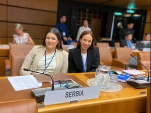 На састанку су узеле учешће и представнице Канцеларије за борбу против дрога Владе Републике Србије, г-ђа Нина Грба и г-ђа Миа Матић које су овом приликом представиле став Србије у две тематске дискусије.